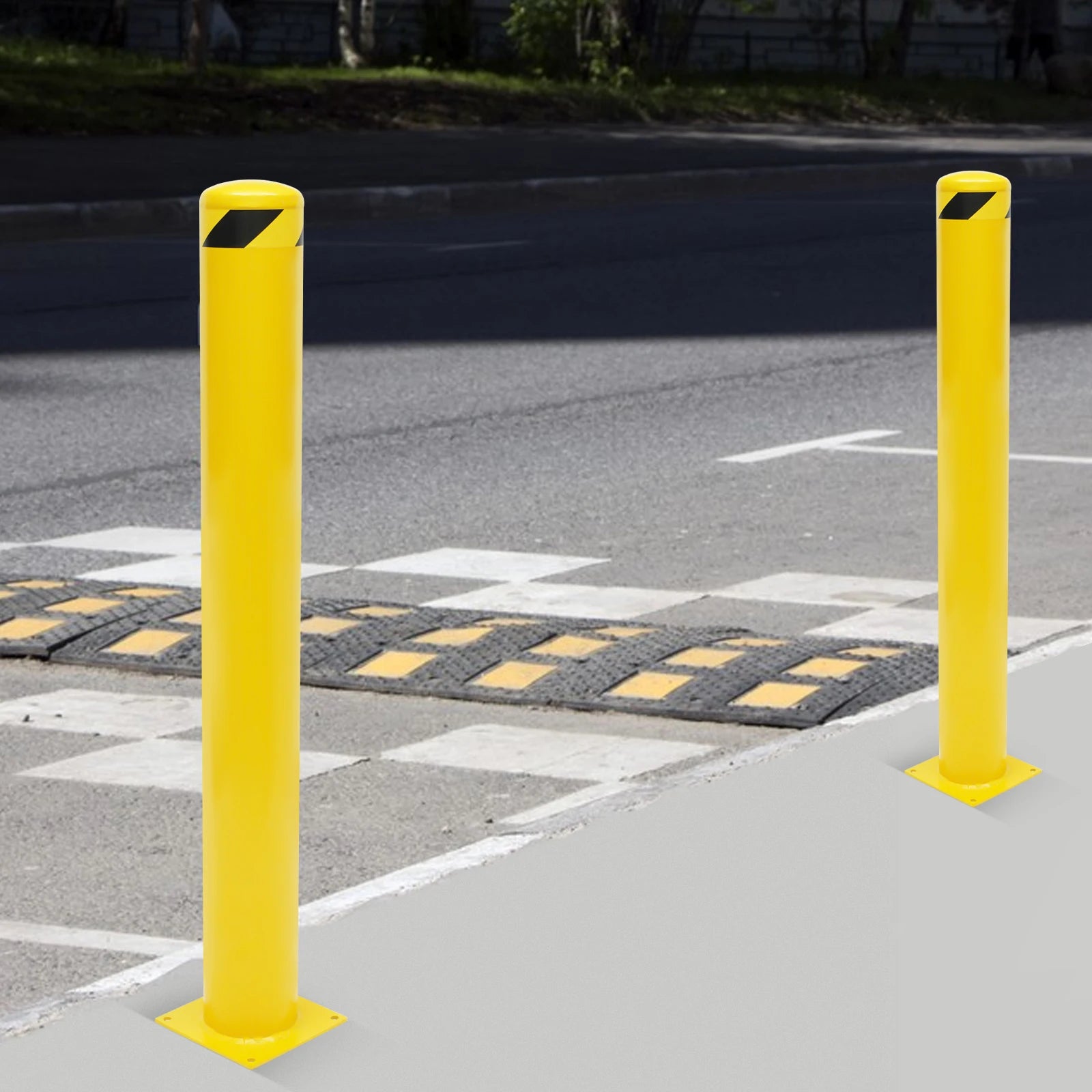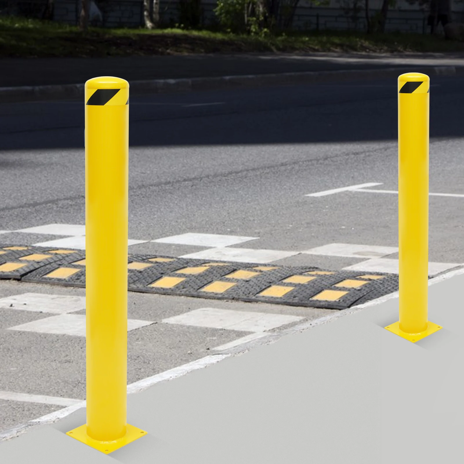 1/2Pcs Safety Bollard, Yellow Steel Safety Bollard with 4/8 Anchor Bolts, Perfect for Traffic-Sensitive Area
