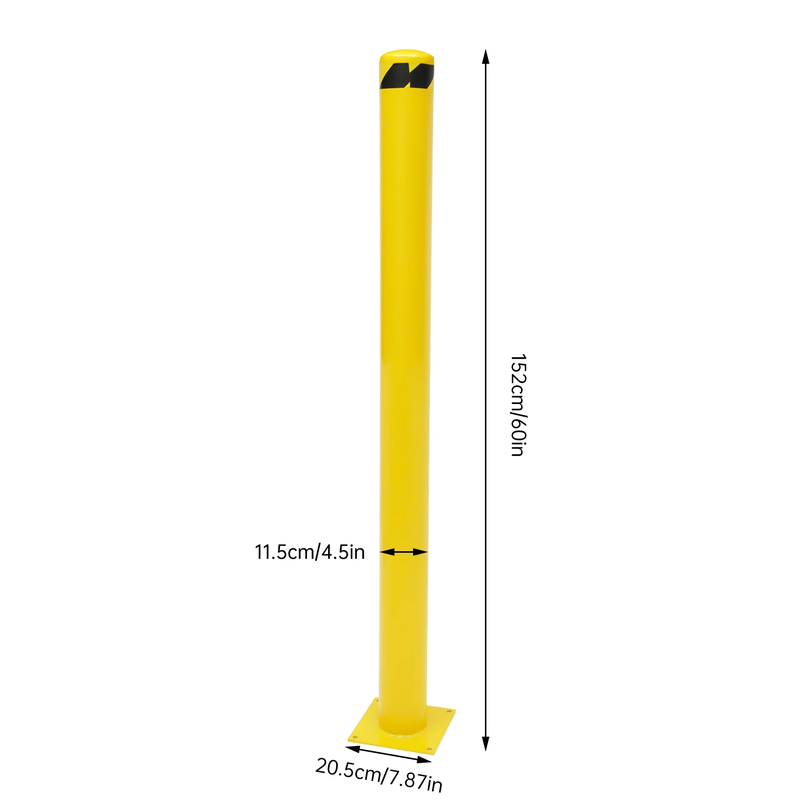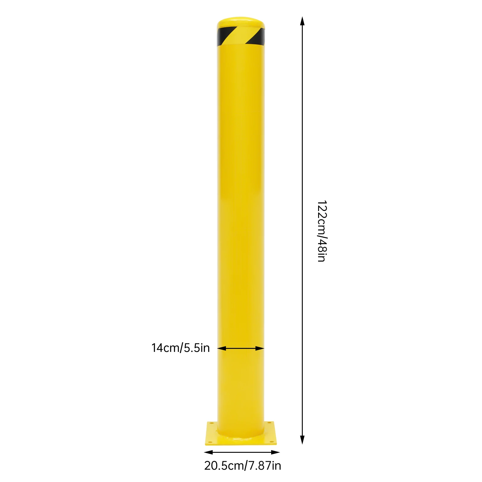 Safety bollard posts with strong reflection are the ideal tool to improve visibility and reduce accidental collisions. Wider bottom mount (7.87 * 7.87 inches) and larger safety bollard post (4.5 inches in diameter) increase the contact area with the ground to make it more stable and less likely to fall over. It is suitable for entrances, parking lots, sidewalks, bike paths, highways, traffic-sensitive areas, etc. to control traffic and protect pedestrians, vehicles, utilities, electrical machinery, buildings, and objects from impacts.