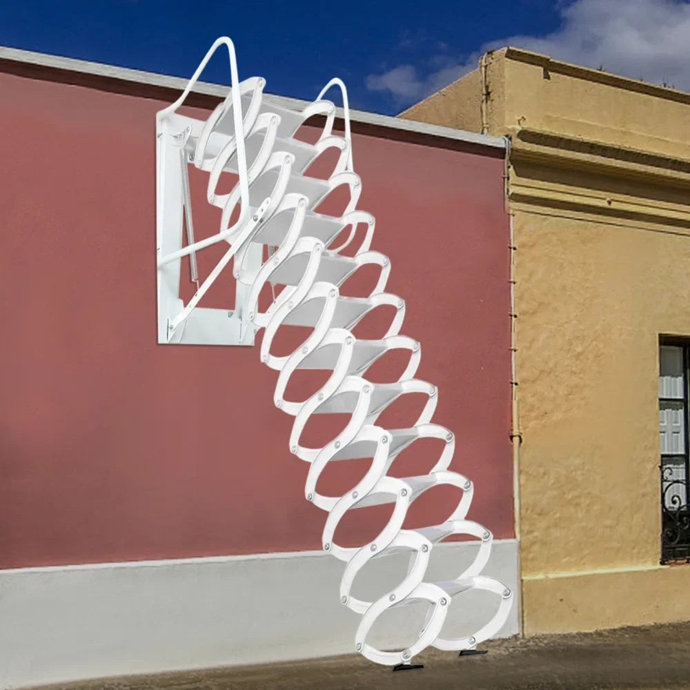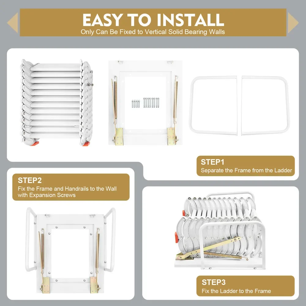 12 Steps Wall-mounted Non-slip Telescopic Extension Folding Ladder 881.85 Lbs Capacity Al-mg Alloy Multi Purpose With Handrails