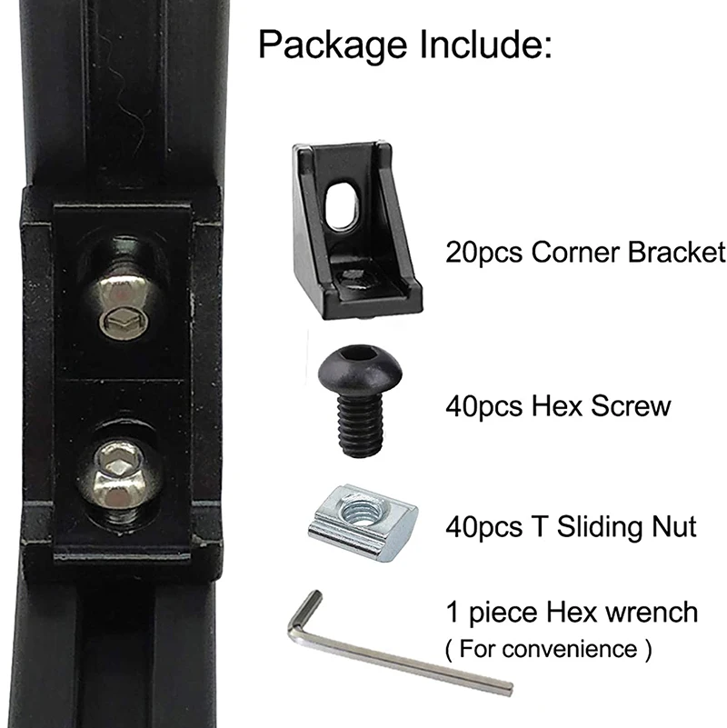 2020 Series Aluminum Profile Connector Set, 20 Pcs Corner Bracket, 40 Pcs T Nuts and Hex Screw Bolt for Slot 6mm Aluminum Profil