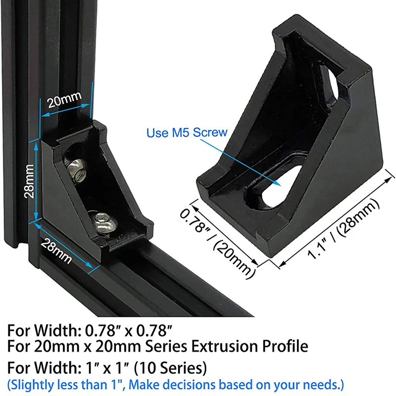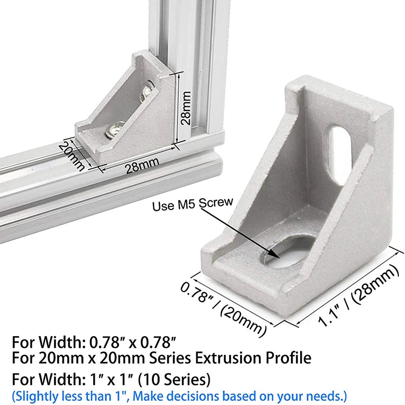 Package include: 20pcs 20x28mm ( 0.78" x 1.1" ), 90 Degree Solid Cast Aluminum Corner Bracket