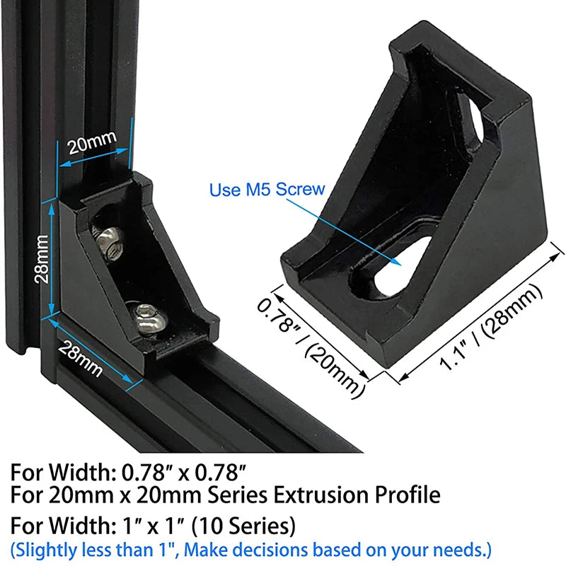 Use on 20mm x 20mm Extrusion Profile, 2020 Series Aluminum Profile Connector Set widely used for building industrial aluminum frame structures, 3D printers, CNC Routers, CNC laser cutters, Robotics Projects.