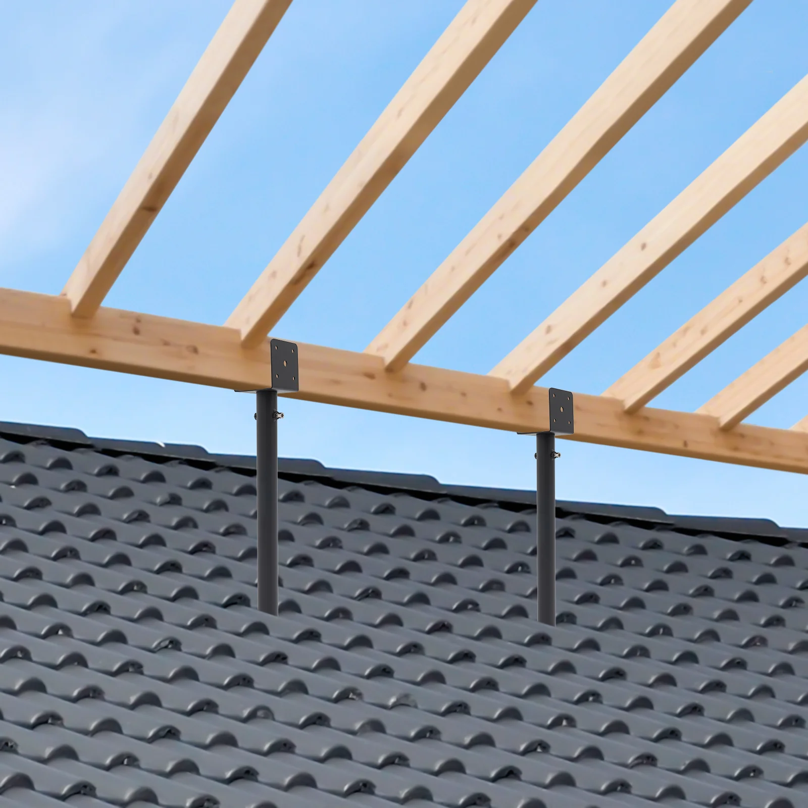 This roof beam bracket kit is made of sturdy materials and has excellent load-bearing capacity and durability. The black finish enhances the appearance while effectively preventing corrosion and wear, maintaining stability in harsh conditions. It is ideal for DIY enthusiasts, providing sturdy support for outdoor structures and enhancing reliability and structural integrity.