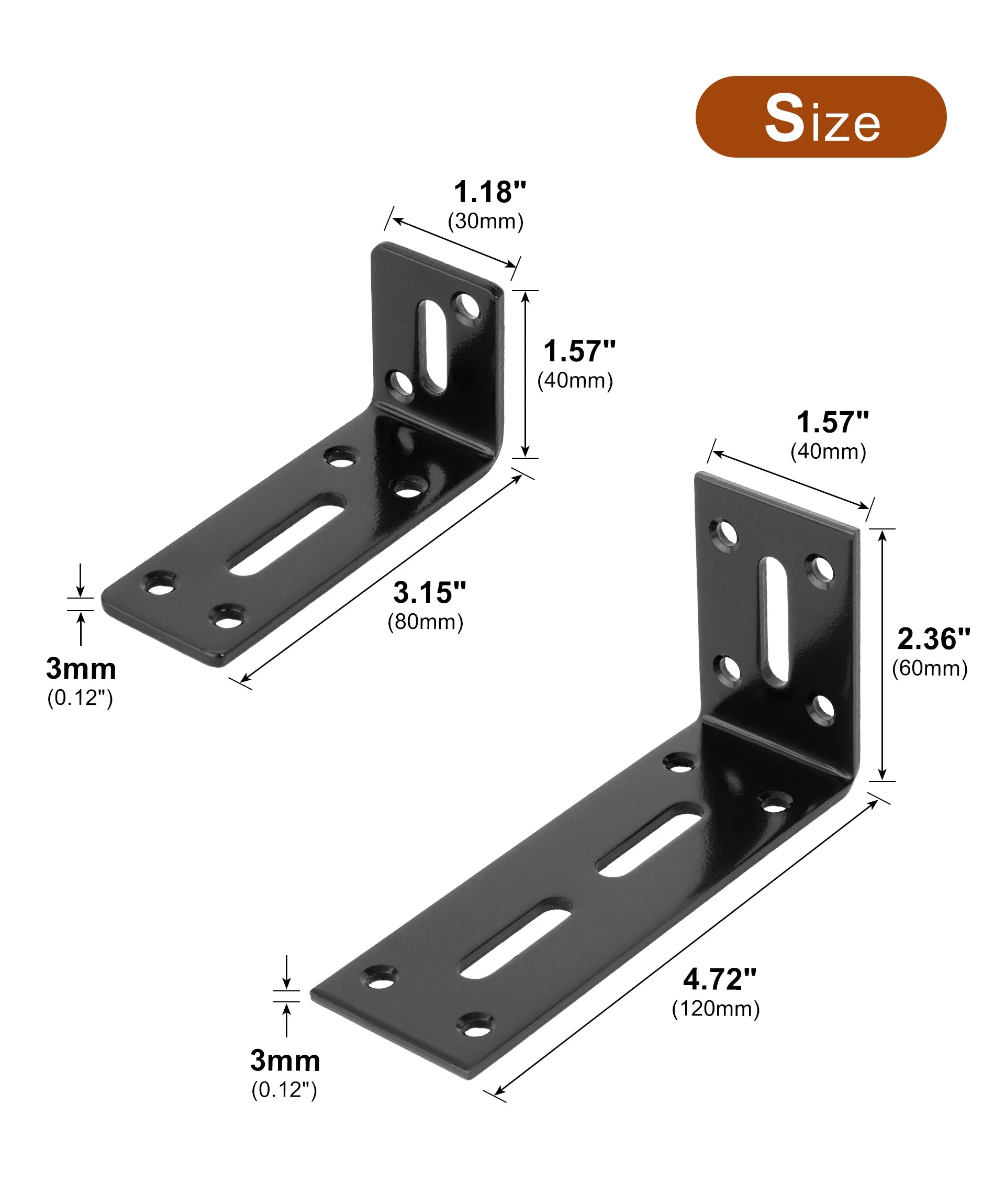 2pcs Adjustable L Shaped Metal Corner Bracket Iron Heavy Duty Black 90 Degree Angle Corner Shelf Brackets for Furniture Mounting