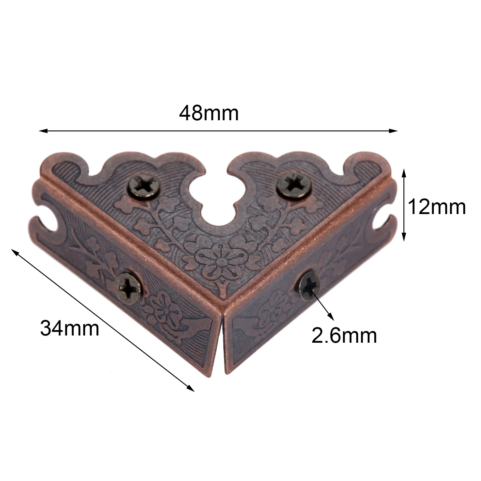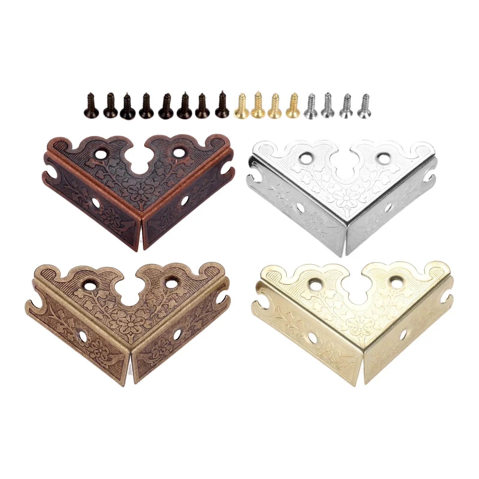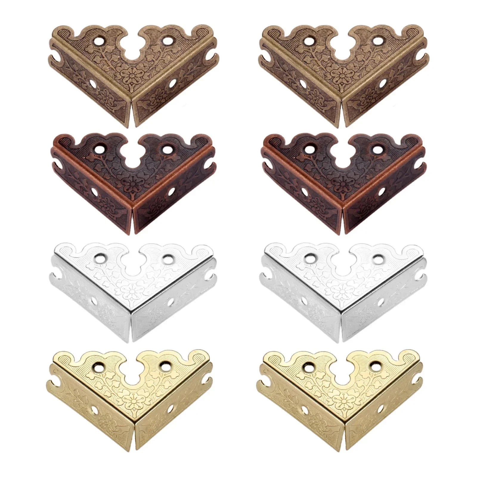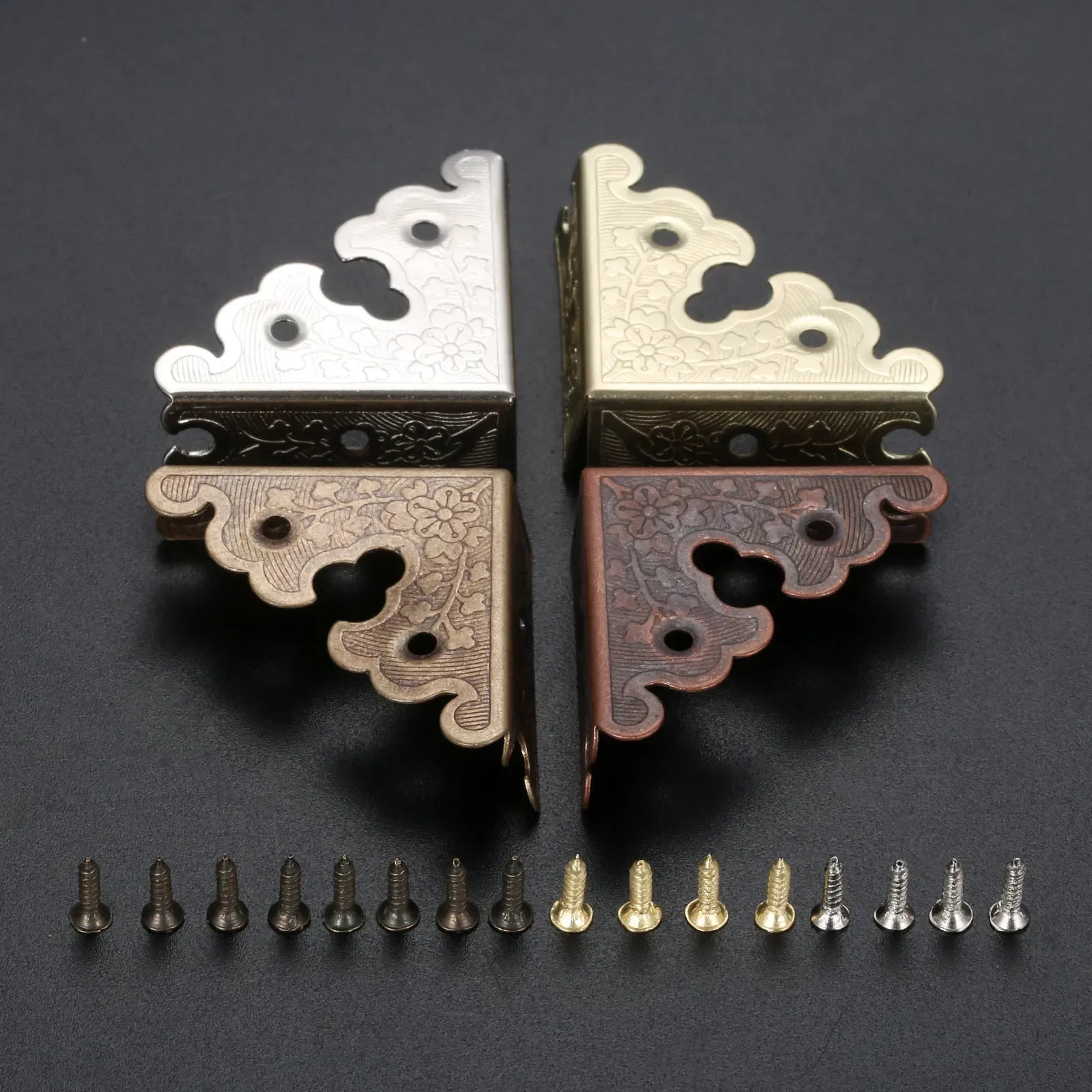 4Pcs 34mm Zinc Alloy Jewelry Wooden Box Triangle Corner Decorative Protectors Furniture Carved Table Corner Brackets Protection