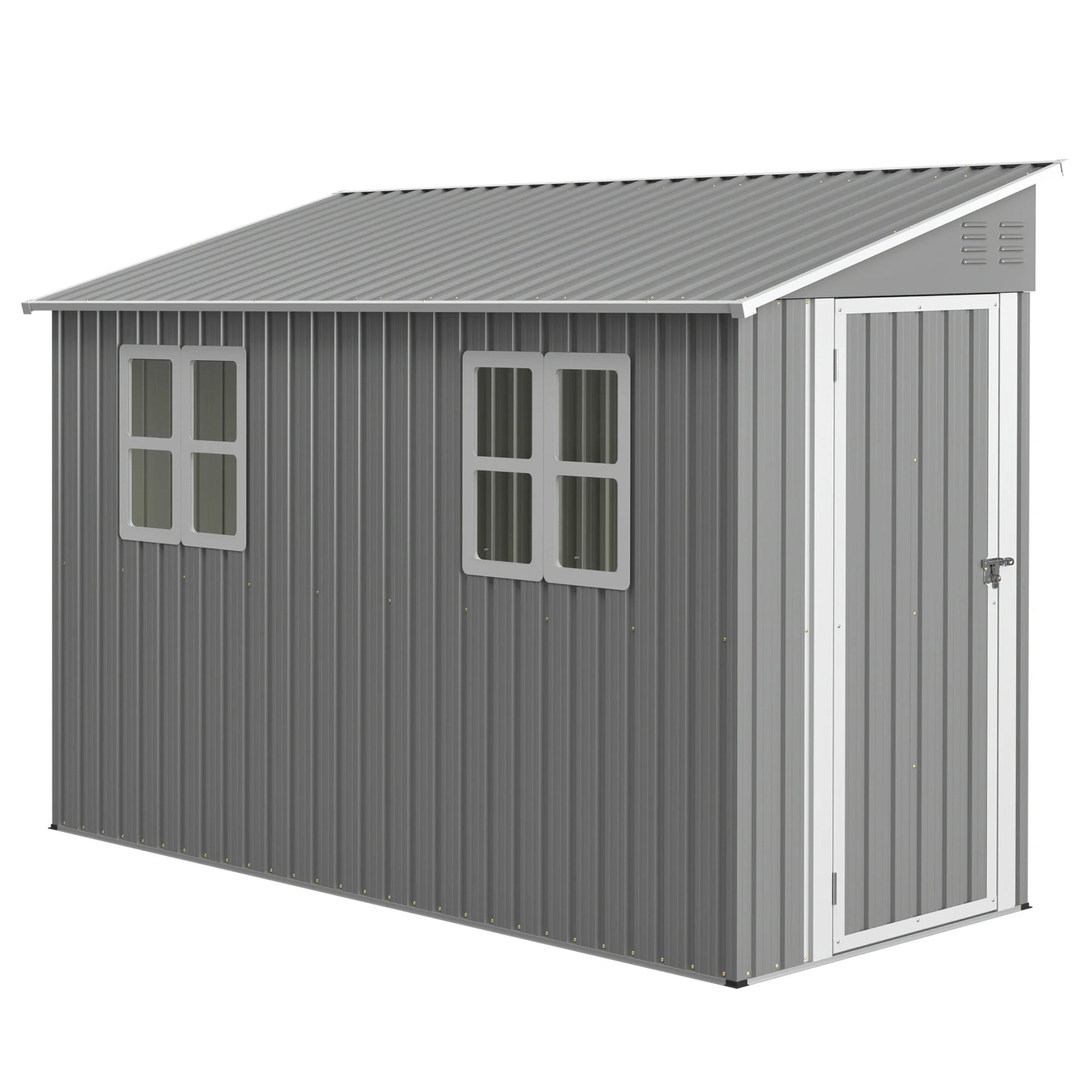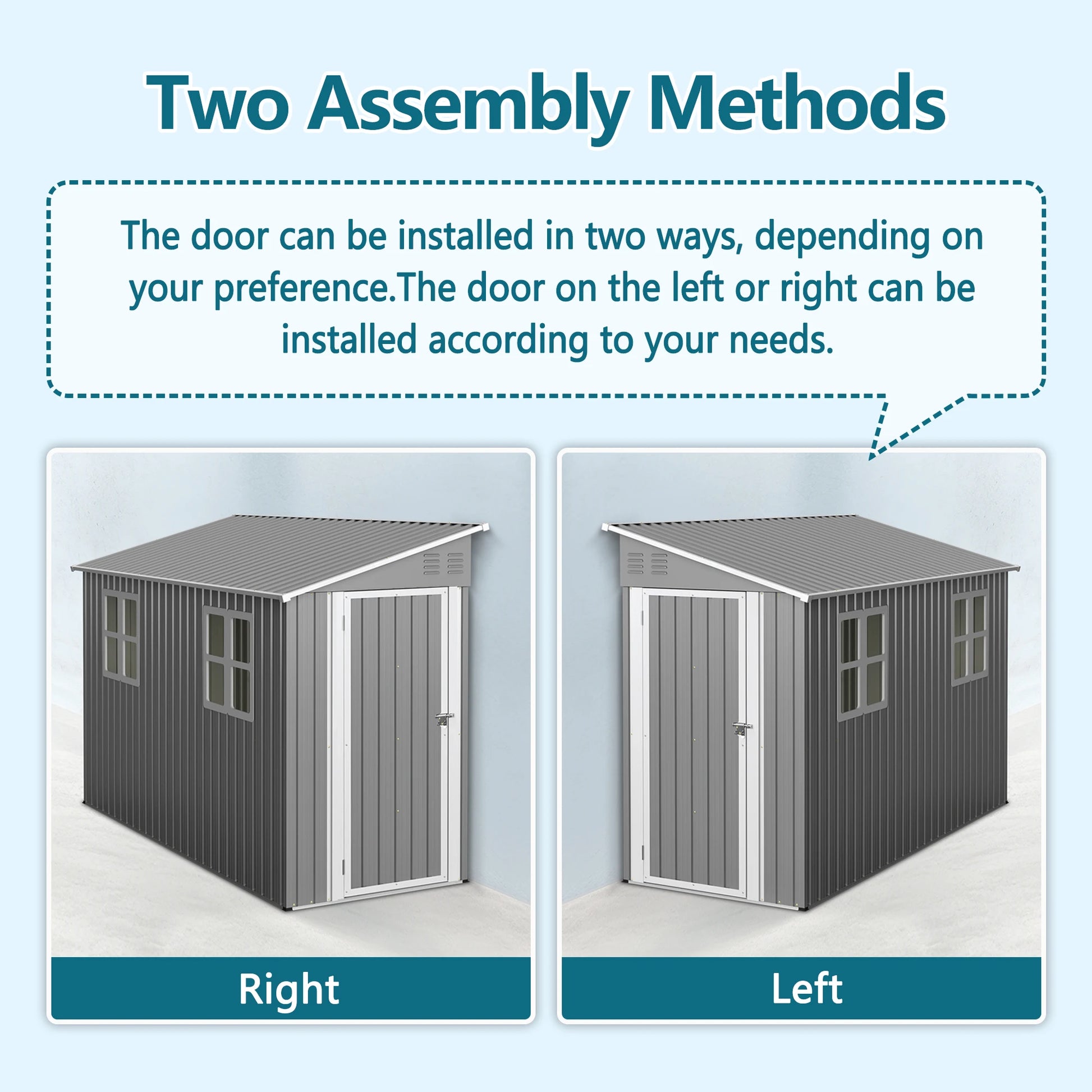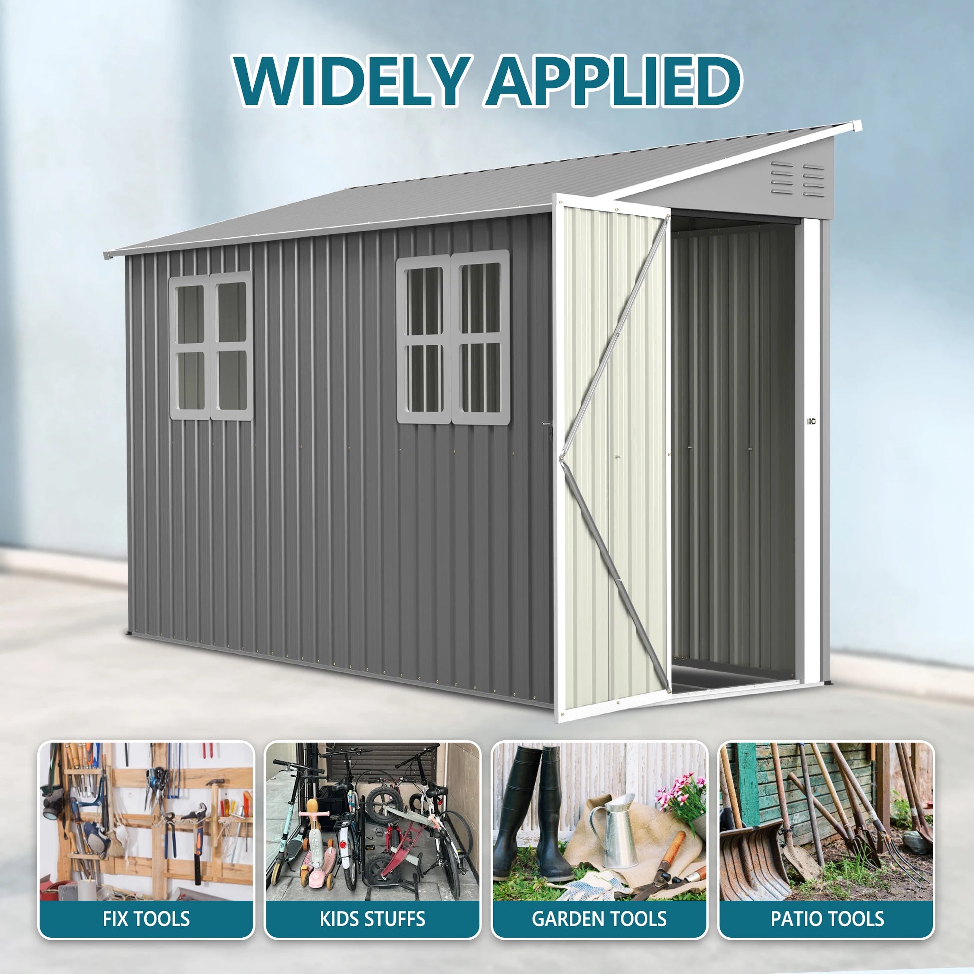 1 4x10 FT Galvanized Steel Outdoor Shed – Weatherproof Lockable Storage for Tools, Bikes & Pets w/Sloping Roof & Window