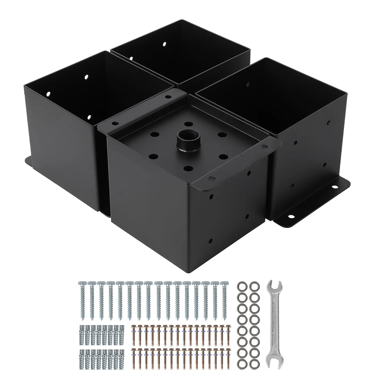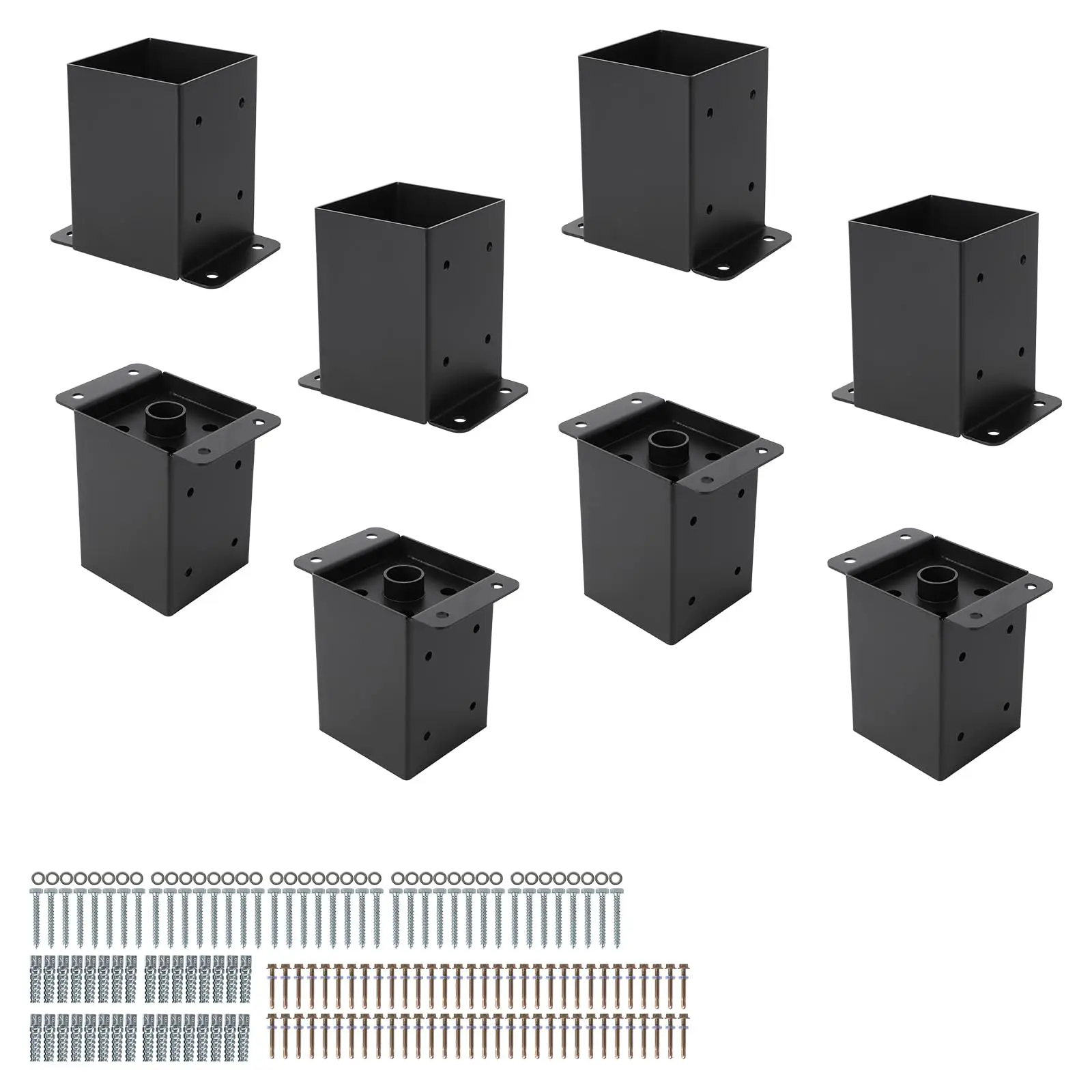 1 New Deal 4"x4" 6"x6" Post Base Set,Steel Deck Post Bracket with Hardware Kit,Post Anchor,Metal Post Holder with Interior Base Fence Deck
