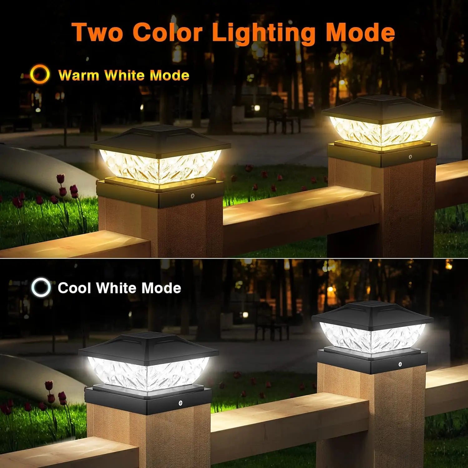 【TWO COLOR MODES & UNIQUE DESIGN】: KPSTEK solar post cap lights have two modes(Cool White& Warm White). You can switch the lighting modes of the fence post lights solar powered at will. Solar fence lights combine stylistic details with sleek, modern lines, decorative rigged clear housing coordinates well with all different styles of outdoor lights & garden decor needs. Our fence post solar lights will give your outdoor space a lasting and wonderful lighting effect