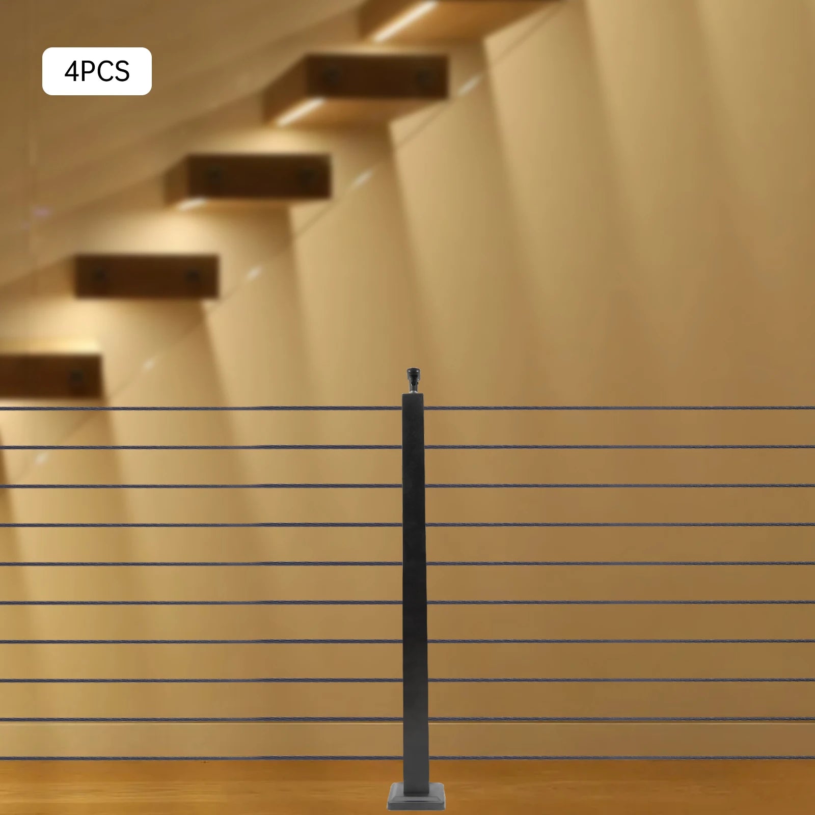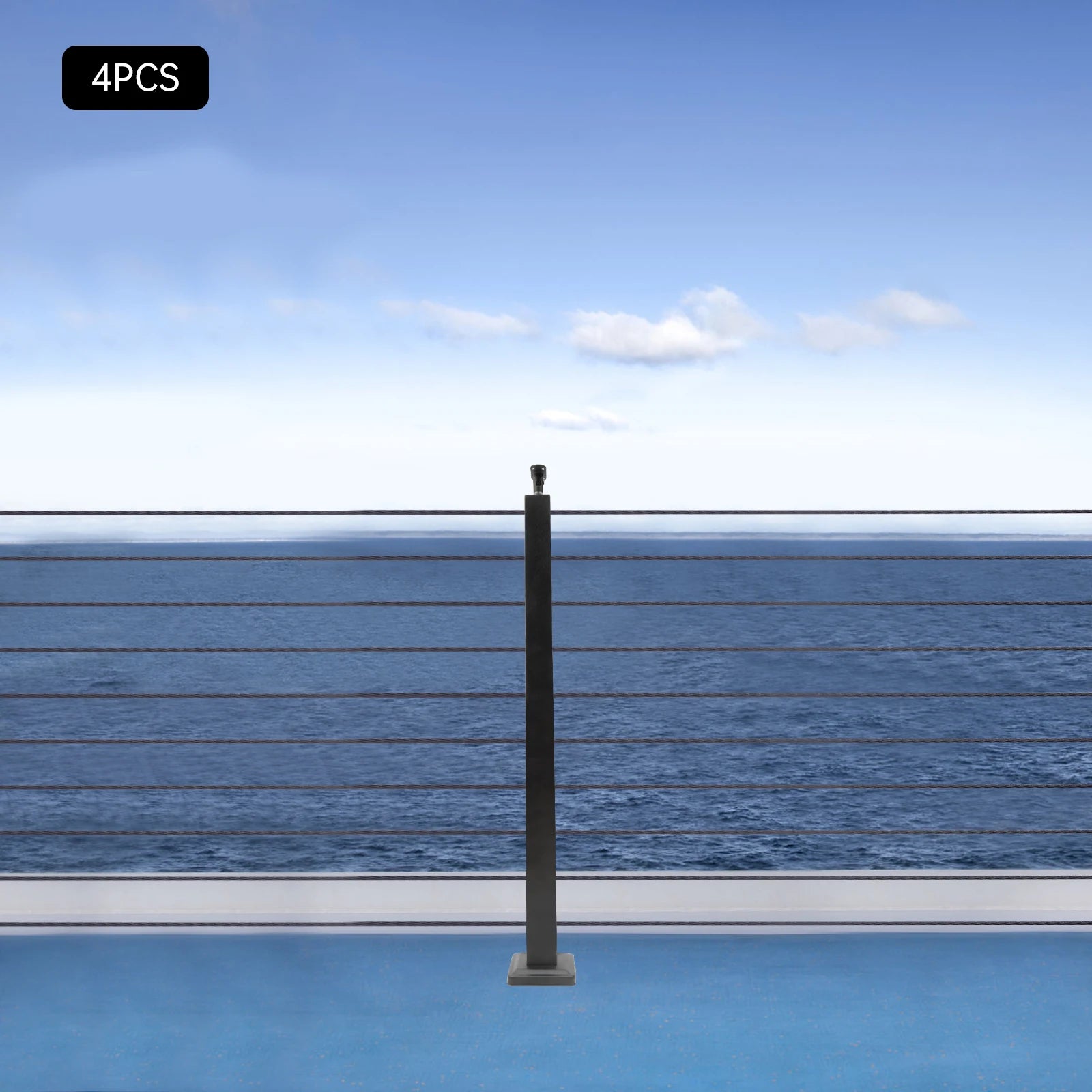 Adjustable Stainless Steel Cable Railing Post 36"x2"x2", Black T-shaped 4pcs Intermediate Column, Indoor and Outdoor Handrails