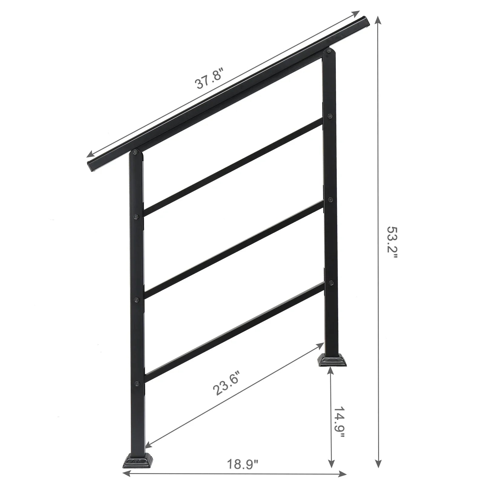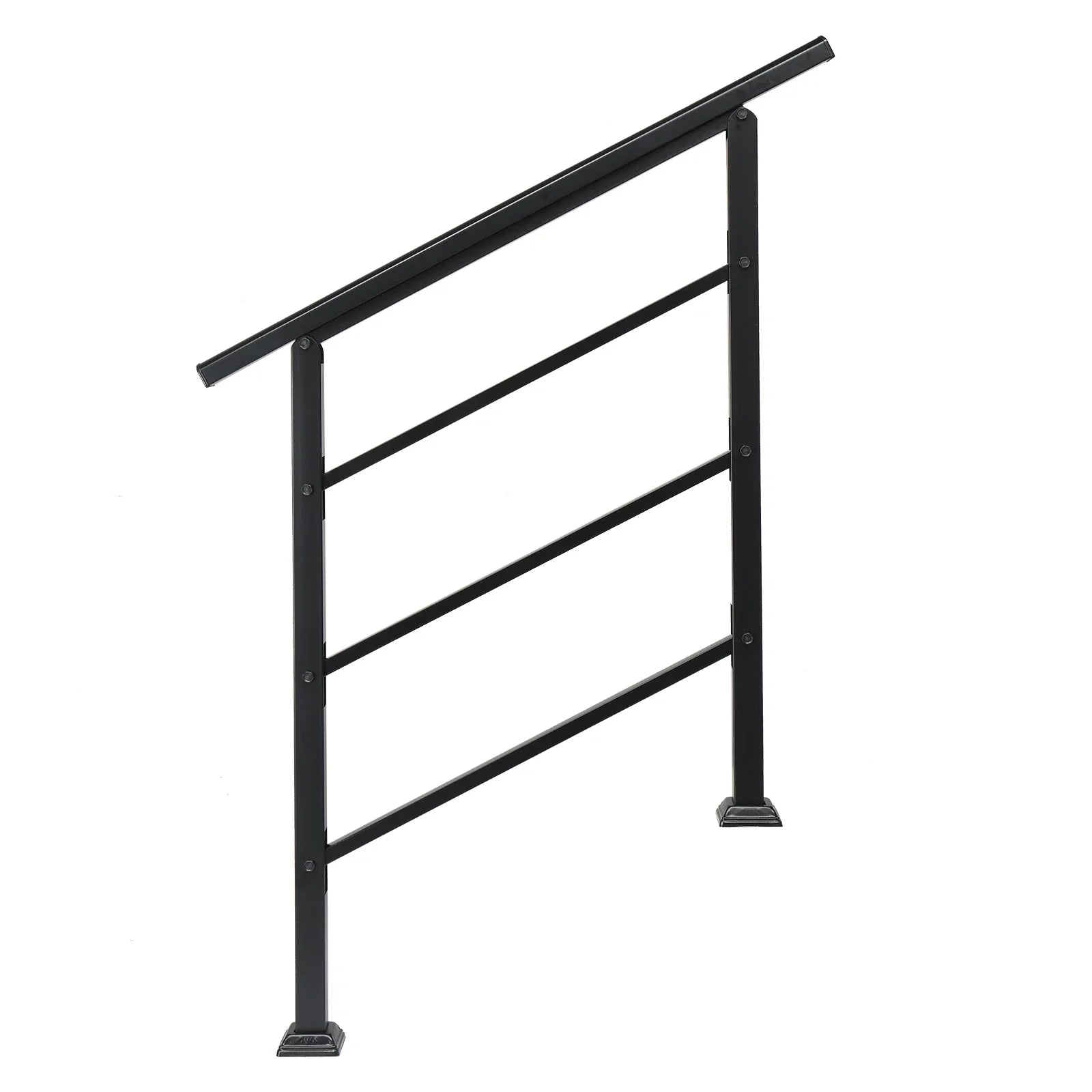 Handrails for Outdoor Steps, Wrought Iron Handrail Fits 1 or 3 Steps, Transitional Handrail with Installation Kit, Black