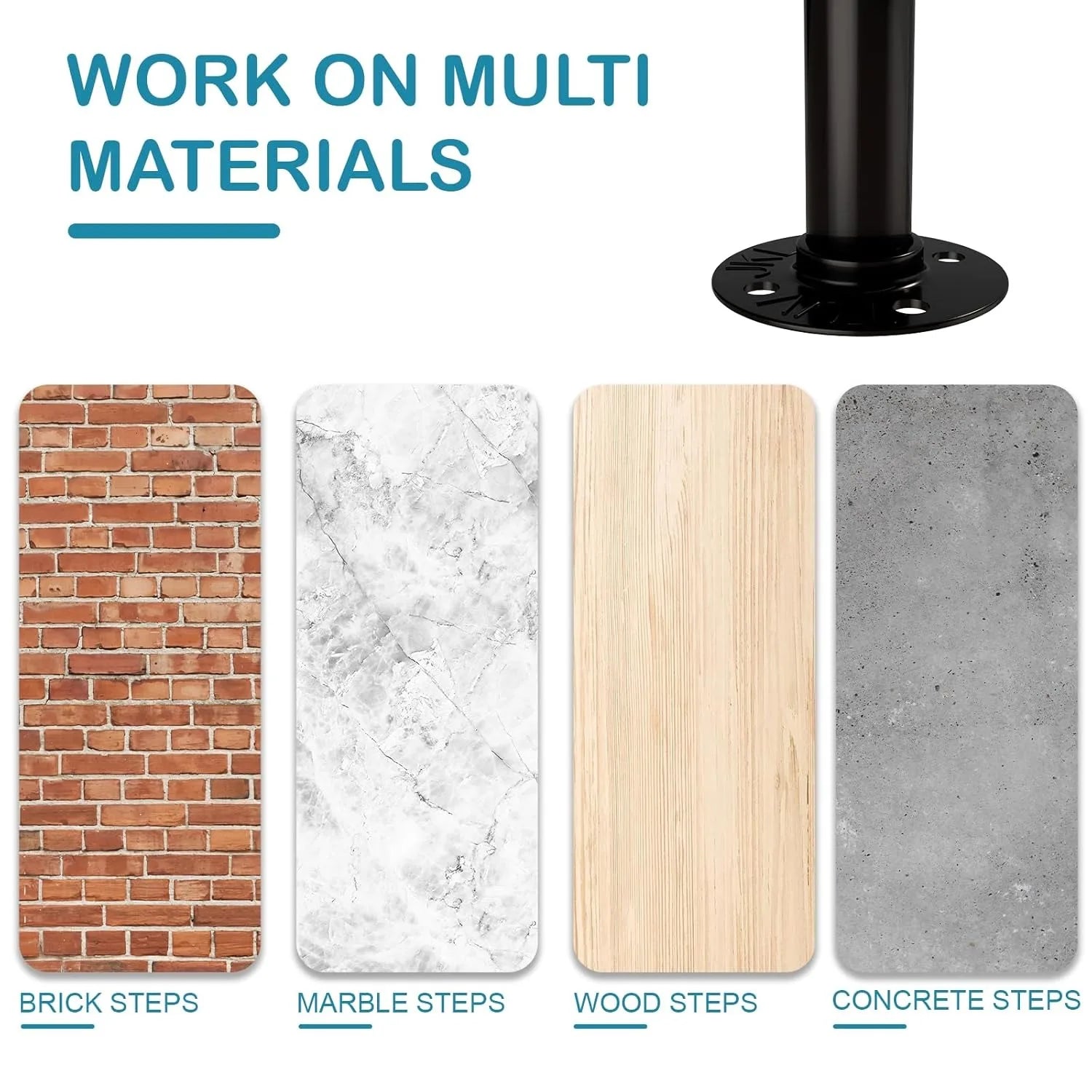 Metal Outdoor Step Handrails for 2-3 Steps - Black Porch & Deck Railing with Install Kit for Concrete/Patio