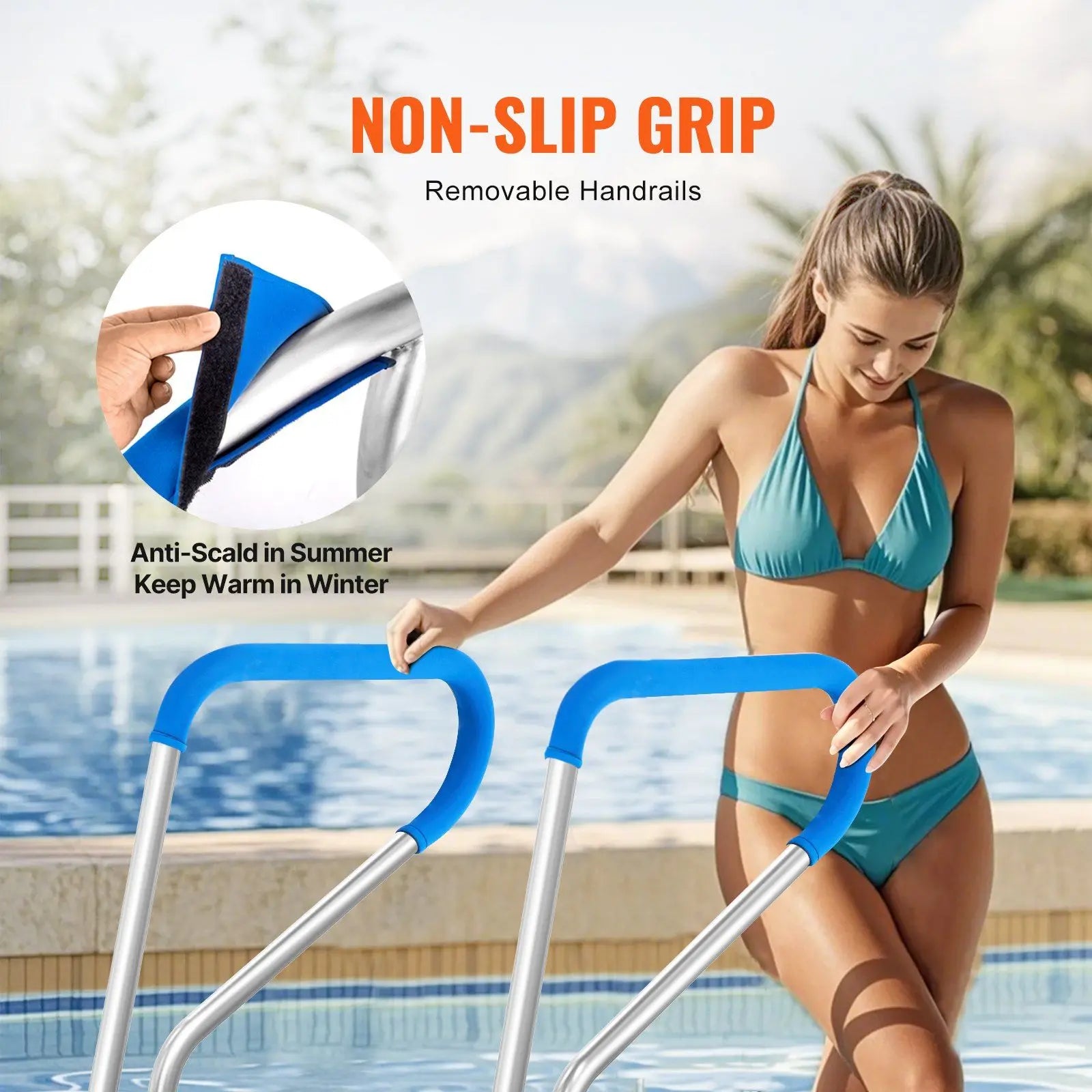 Expertly crafted stainless steel handrails ensure every step while boarding is solid and reliable. Seamless welding techniques prevent rust and corrosion, making them perfect for poolside safety.