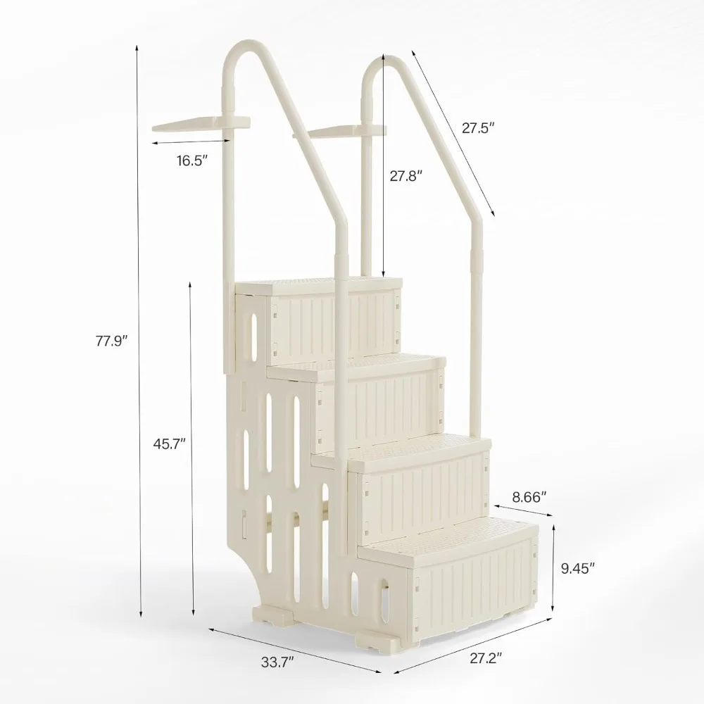 Pool Ladder Heavy-Duty Safety Step for Above Ground Pools Stair Entry System with Handrails, White and Grey (White, 4 Steps)