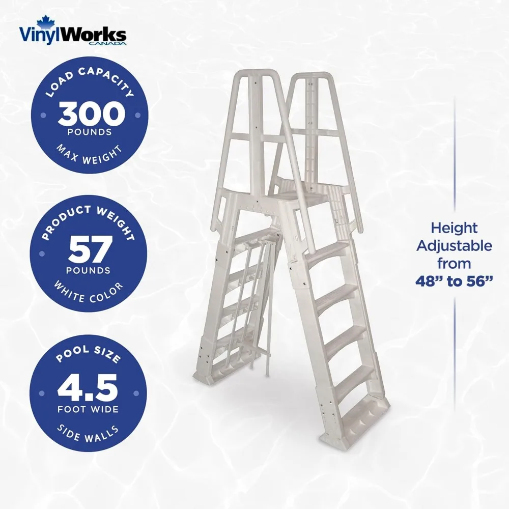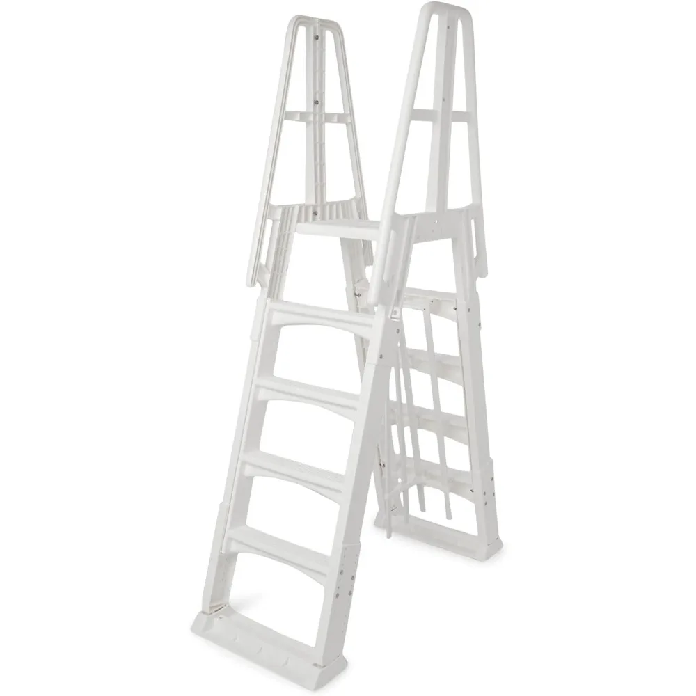 SLA A-Frame 48 to 56 Inch Adjustable Above Ground Swimming Pool Ladder Entry System with Slide Lock Barrier and Handrails, Whit