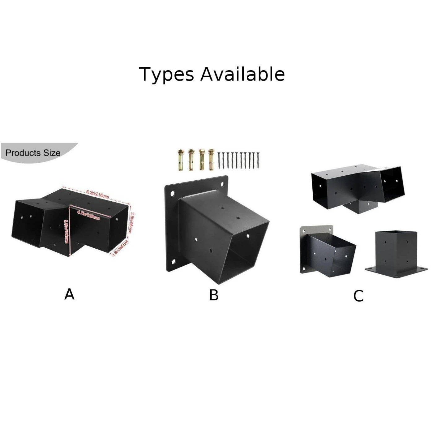 1*3-way Pergola Bracket+1*Unidirectional Pergola Bracket+1*Base(with Screws)