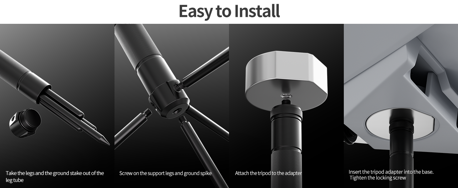 Extended Ground Stake: In addition to the triangular design to enhance stability, the starlink tripod stand also features an extended ground stake to ensure a firm grip in rough terrain, ensuring the stability and precise positioning of the Starlink Mini, which is especially suited for maintaining optimal signal reception outdoors.