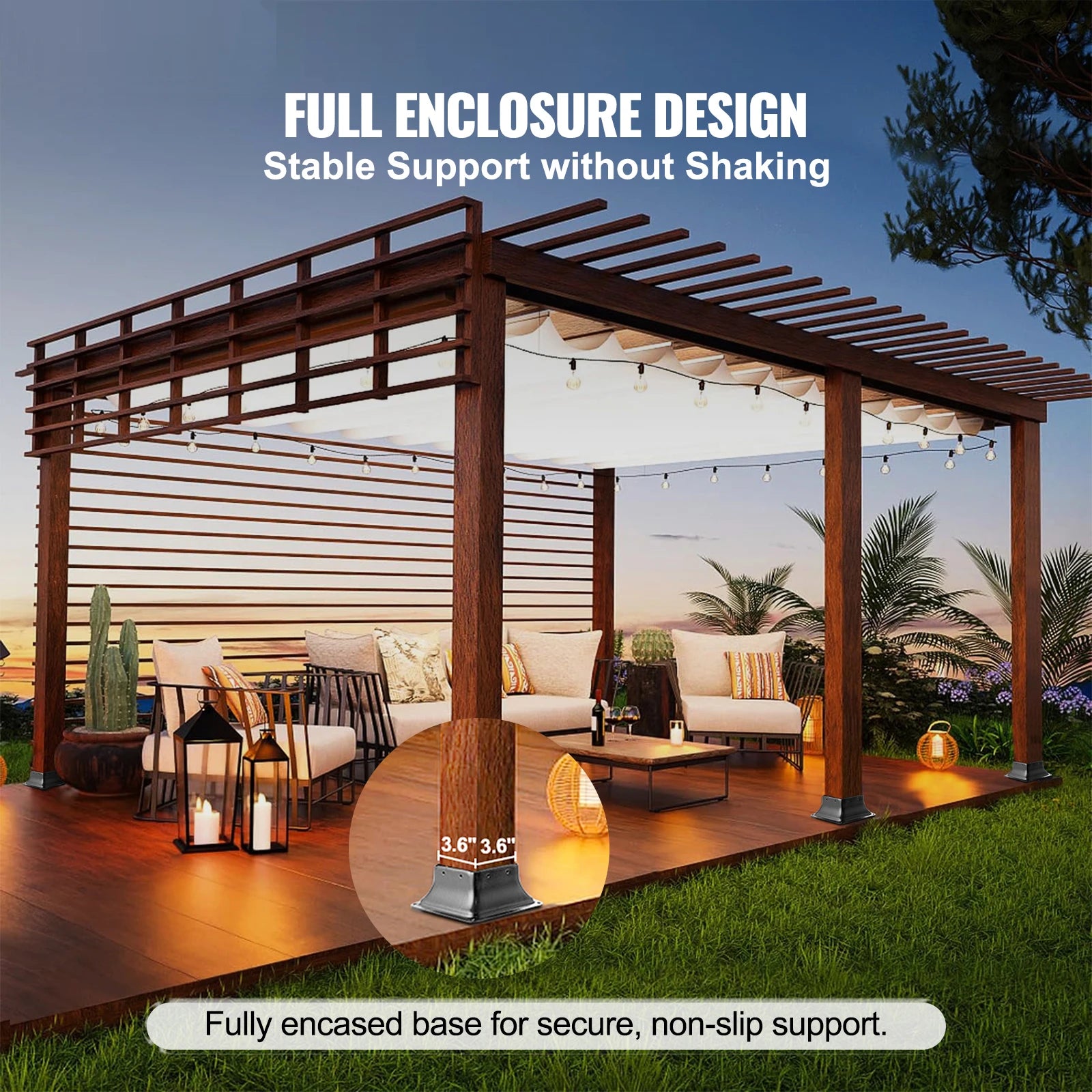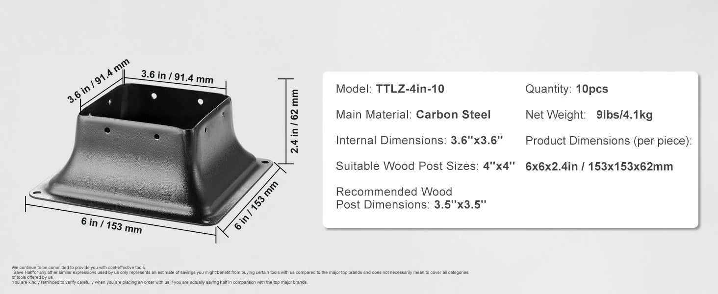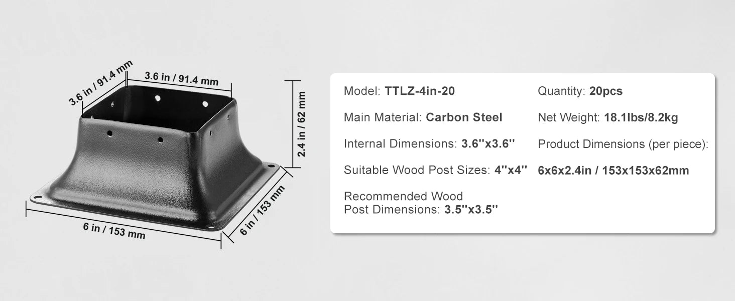 Sturdy Support: Single Product Dimensions: 6x6x2.4 inches / 153x153x62mm, Inner Dimensions of Column Base: 3.6''x3.6'', suitable for 4''x4'' columns commonly found in the market (actual market size is 3.5"x 3.5"), Provides secure and effective support, ensuring stability without wobbling.