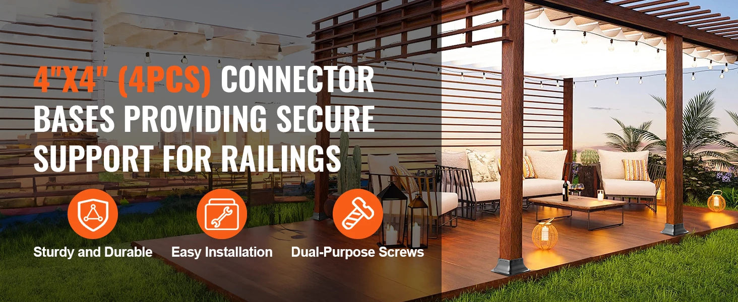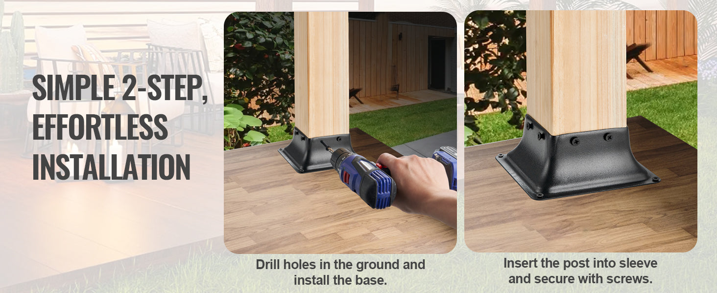 Versatile Use: The connector base can be installed on both concrete and wooden floors and can be widely used for providing secure support in applications such as porch railings, pergolas, and columns.