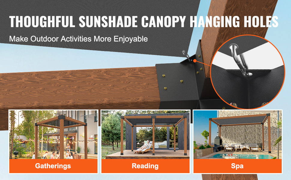 Sunshade Sail Attachment: Easily Mount Sunshade Sails to Block Sunlight and Protect the Pergola Interior from Direct Sun Exposure, Creating a Comfortable and Shady Retreat. Additionally, It Shields Against Rain, Keeping Your Belongings Dry. Convenient Grommet Holes Facilitate Sail Installation, Maintenance, and Cleaning.