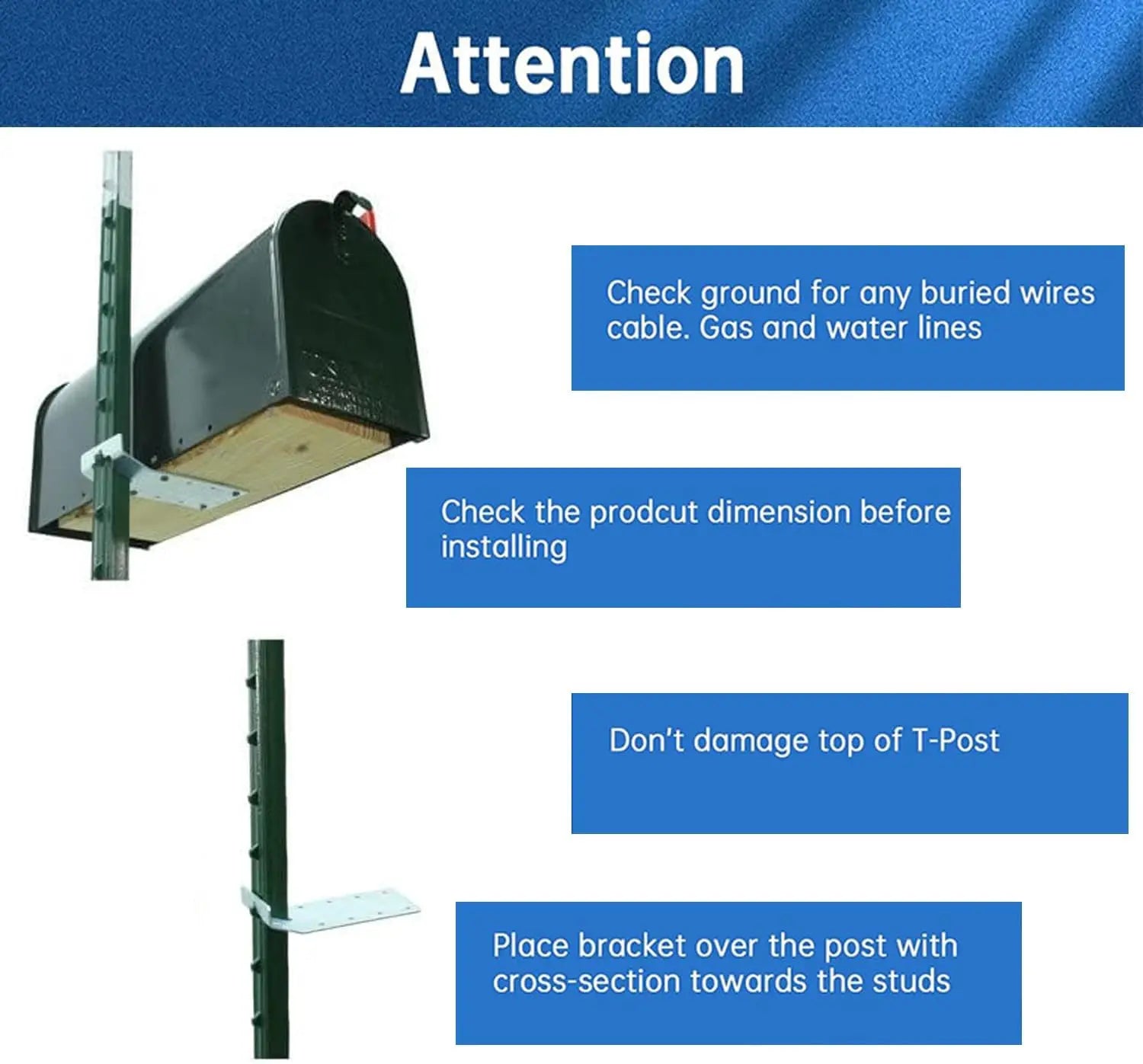 High Load Capacity: The T-Post Mounting Bracket is designed to work with T-posts for easy installation of birdhouses and fences. With a weight capacity of 400 lbs, it is the preferred tool for installing mailboxes and birdhouses